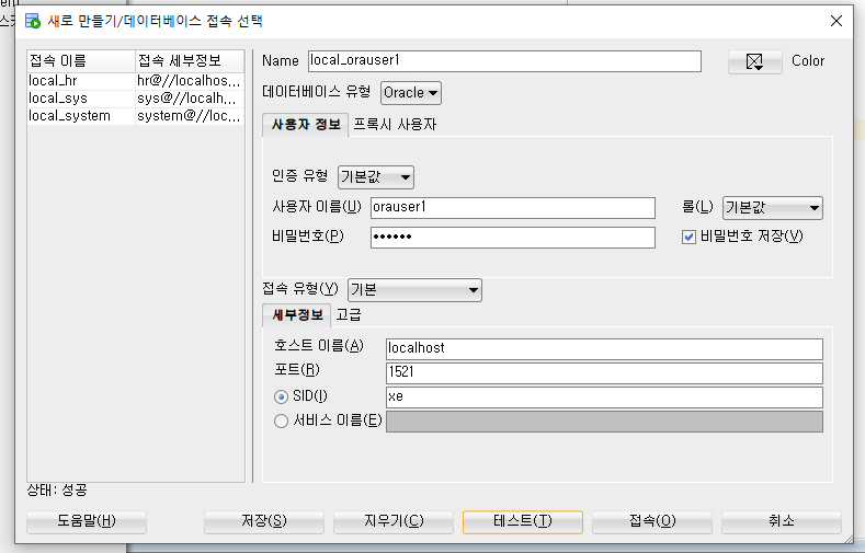 -- 생성되어진 오라클 일반사용자 계정인 orauser1 에게 오라클서버에 접속이 되어지고,