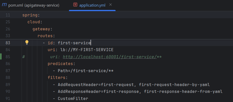 -Load Balancing: lb://서비스명을 사용하면, Eureka에 등록된 서비스 중 하나로 라운드 로빈 방식으로 전달됩니다.