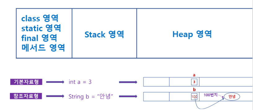 실제 값은 힙에 저장되고, 스택에는 그 주소가 저장 ⇒ 크기가 가변