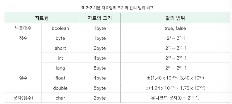 변수 선언 시 변수가 가지는 데이터 타입을 지정