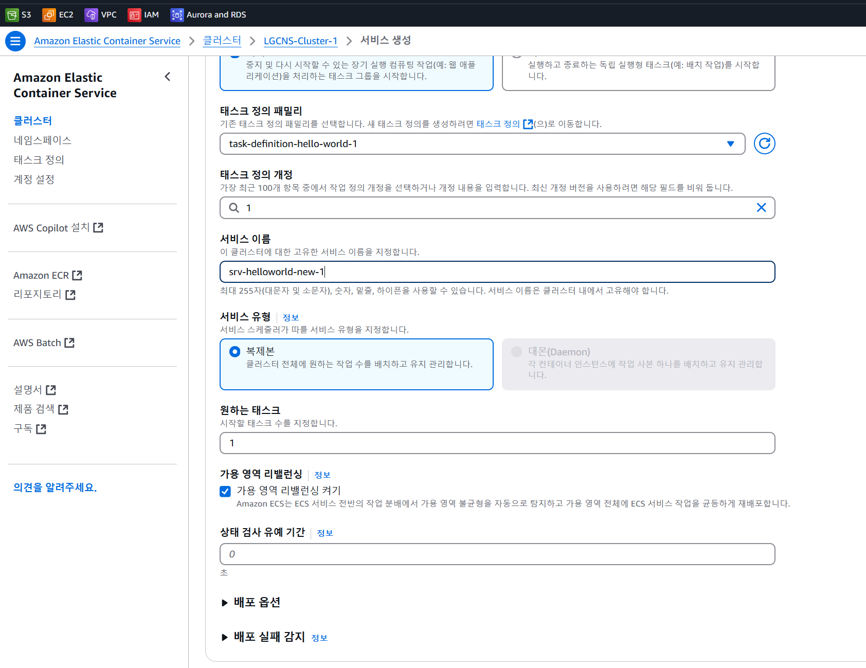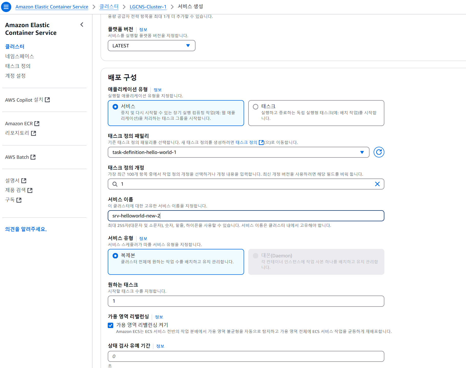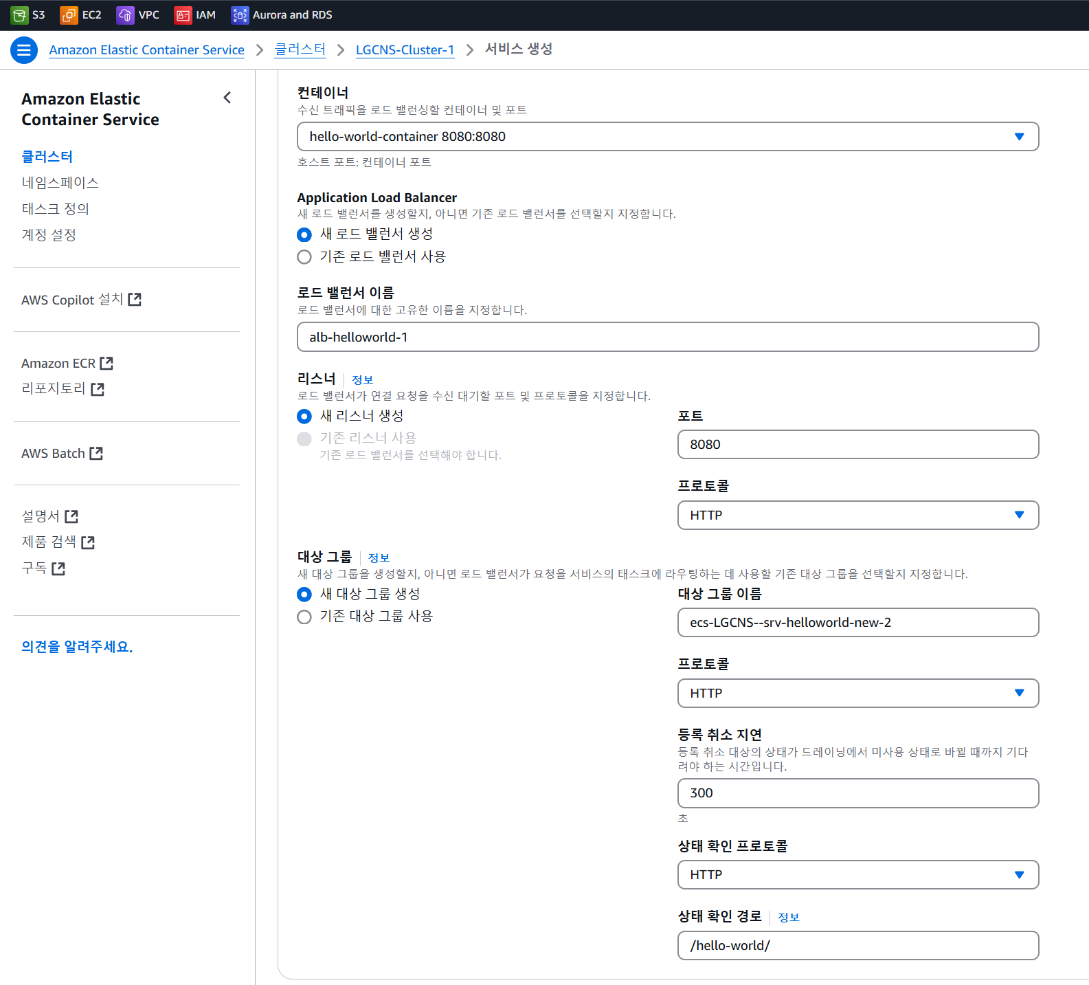 새 로드밸런서 생성 (ECS 에서 생성 후 지정 가능)