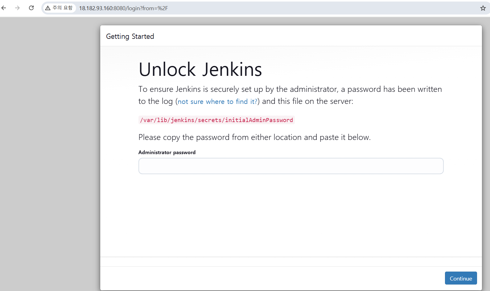 안되면 보안 그룹에 포트 추가 / jenkins running 여부 확인.