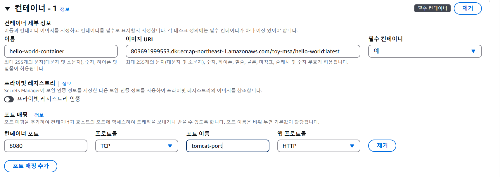 퍼블릭 IP 로 접근 (클러스터> 태스크> 서비스 클릭 > 구성)