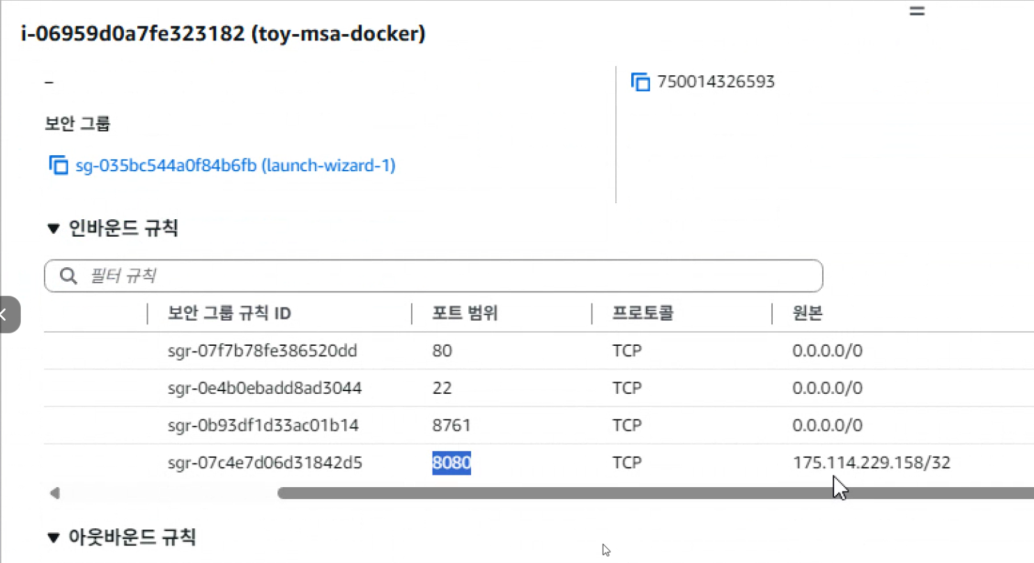 로드밸런서 > 보안 > 인바운드 규칙에 포트 있어야함 (8080)