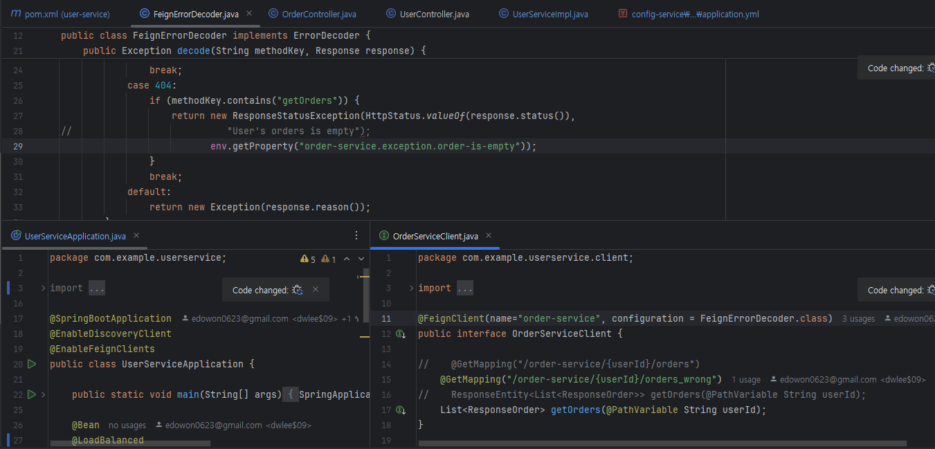 (errorDecoder 코드 추가, app에 어노테이션, client에 configuration 추가)