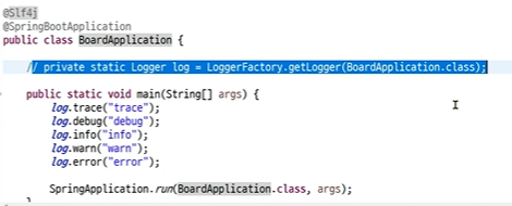 그런데, 로그포제이 롬복을 쓰면 Logger 선언을 안해도 된다.