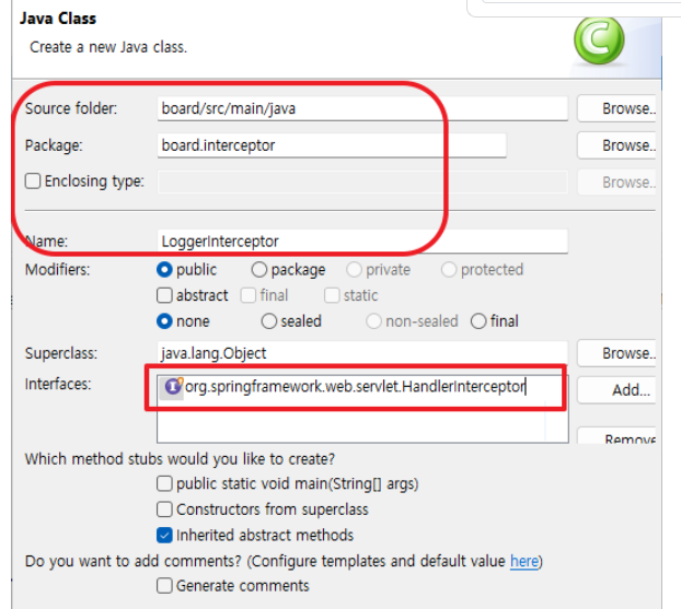 스프링 MVC에서 인터셉터는 HandlerInterceptor 인터페이스를 상속받아서 구현.