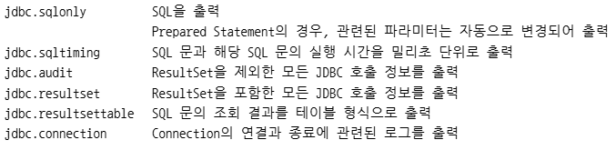 JDBC 드라이버의 SQL 활동을 콘솔 또는 파일에 출력하는 용도로 사용