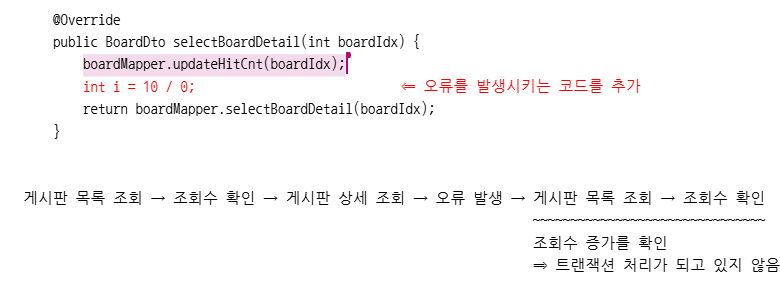 게시판 수정 중 오류 시 카운팅 올라가지 않는 결과가 동일한 것을 확인 할 수 있다.