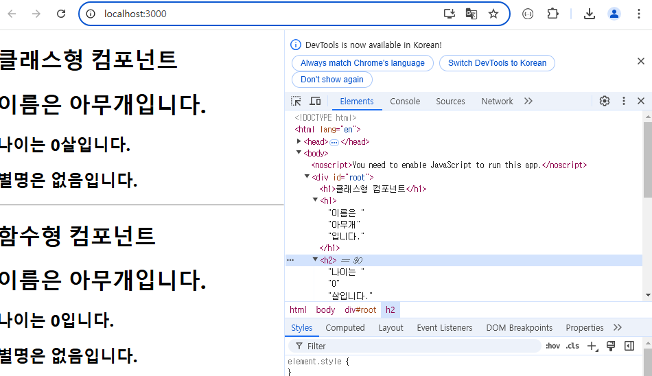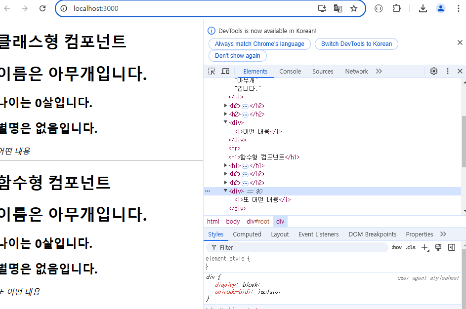 => 자식 컴포넌트의 내용(< i> 태그의 내용)이 출력되지 않는 것을 확인