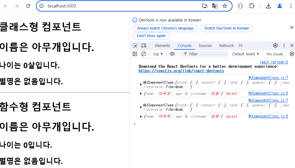 function MyComponentFunction( {name = "아무개", age = 0, nickname = "없음"}) {