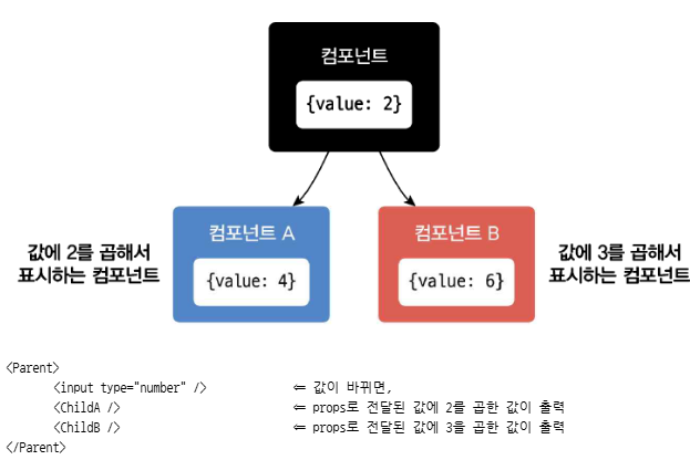 부모 컴포넌트의 상태변수를 자식 컴포넌트의 props로 전달
