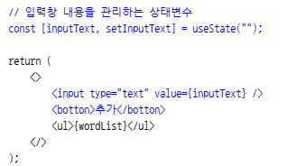 입력받은 input type에도 제거 내용을 적용하려면 state 변수값을 연결시켜줘야한다.