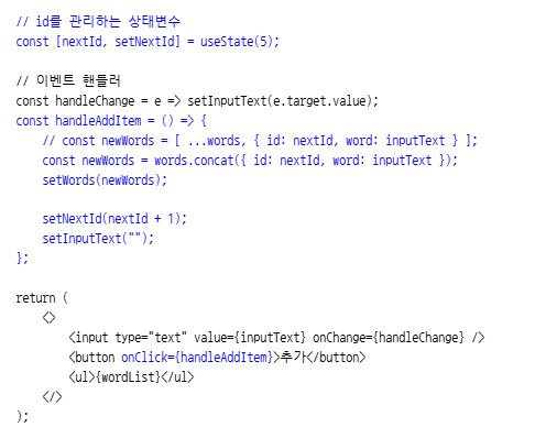 // const newWords = [ ...words, { id: nextId, word: inputText } ];