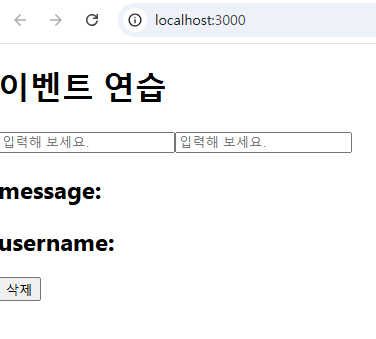 value={this.state.message} ⇐ 해당 라인이 없으면 삭제 버튼을 클릭해도 입력창 내용은 삭제되지 않음