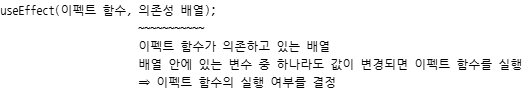 클래스형 컴포넌트의 componentDidMount, componentDidUpdate, comdponentWillUnmount를 합친 형태.