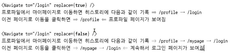 일반적으로 replace = { true }로 둔다. (계속해서 같은 페이지가 보여지는 걸 방지)