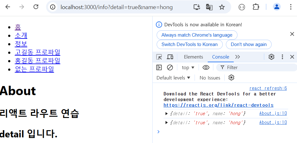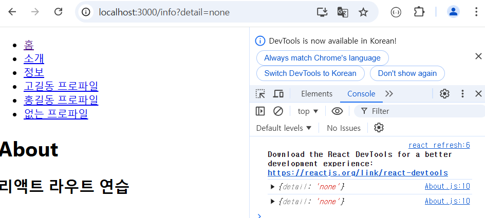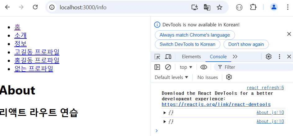http://localhost:3000/about ⇒ About 컴포넌트가 제공