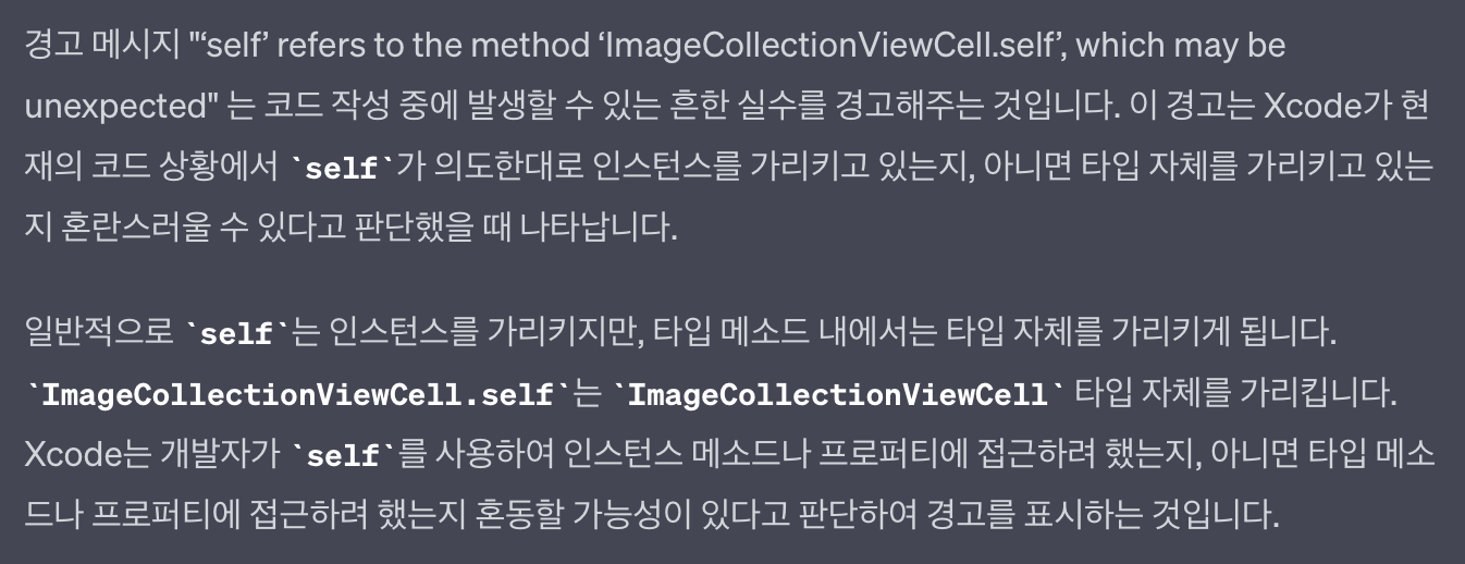 인스턴스 의 메서드를 가리키는건데 ImageCollectionViewCell.self