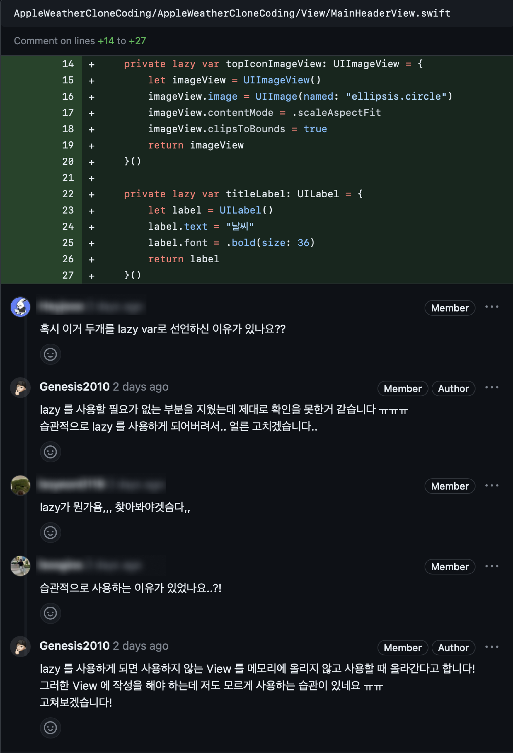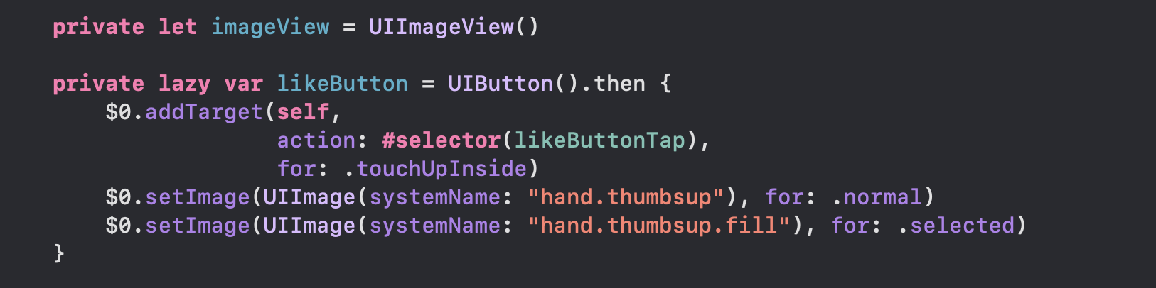 또한 SOPT 3차 세미나 중 사용한 코드인데 likeButton 은 'ViewController 가 로드 될 때 부터 사용할 요소인데 굳이 왜 lazy 를 선언해야만 하나...?' 라는 궁금점과 함께 lazy 를 다시 알아보고 싶었습니다!