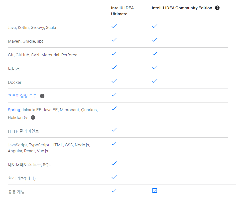 홈페이지 URL : https://www.jetbrains.com/ko-kr/products/compare/?product=idea&product=idea-ce