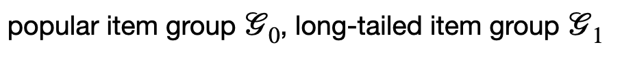 popular group과 long-tail group (G0, G1)을 구분하는 기준으로는, interaction 수를 기준으로 top 20%를 G0, 나머지를 G1으로 정의하였다.