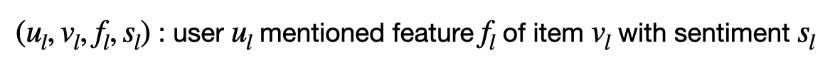 리뷰 데이터로부터 아래와 같은 quadruple의 set을 먼저 생성한다.