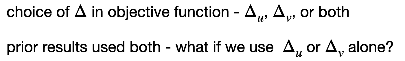 기존의 결과들은 모두 u (유저), v (아이템)에 대한 델타 값을 모두 사용하였는데, 둘 중 하나만 사용했을 때 어떤 결과가 나왔는지 실험해본 것이다.