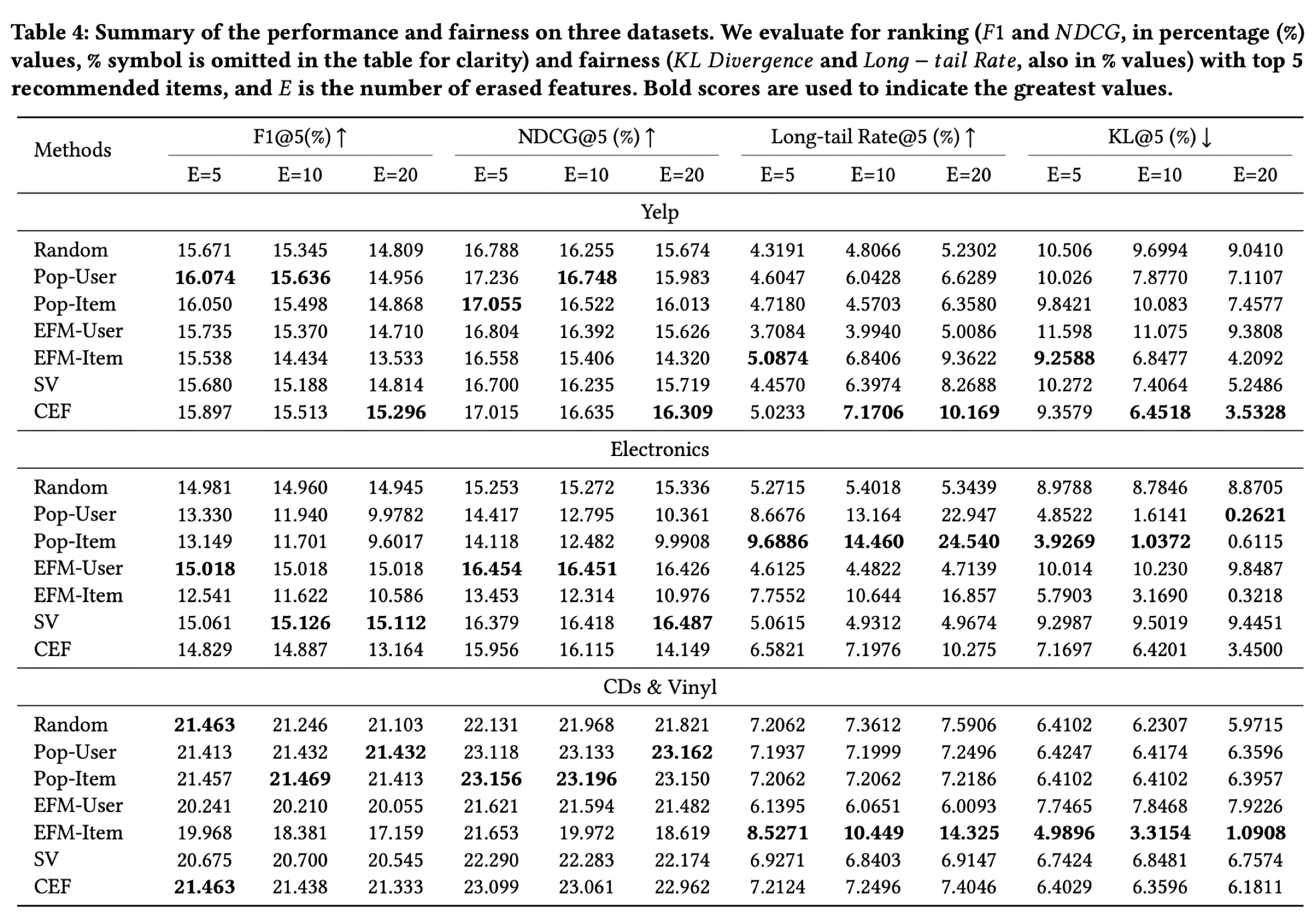 이는 feature를 지울수록 인기 많은 아이템과 long-tail 아이템 간의 표현 격차 (representation gap)가 줄어들기 때문이라고 직관적으로 설명할 수 있다.