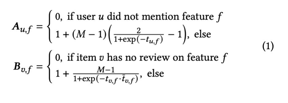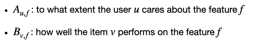 W를 이용하여 아래의 식을 통해, 최종적으로 user-feature attention matrix A와, item-feature quality matrix B를 만들 수 있다.