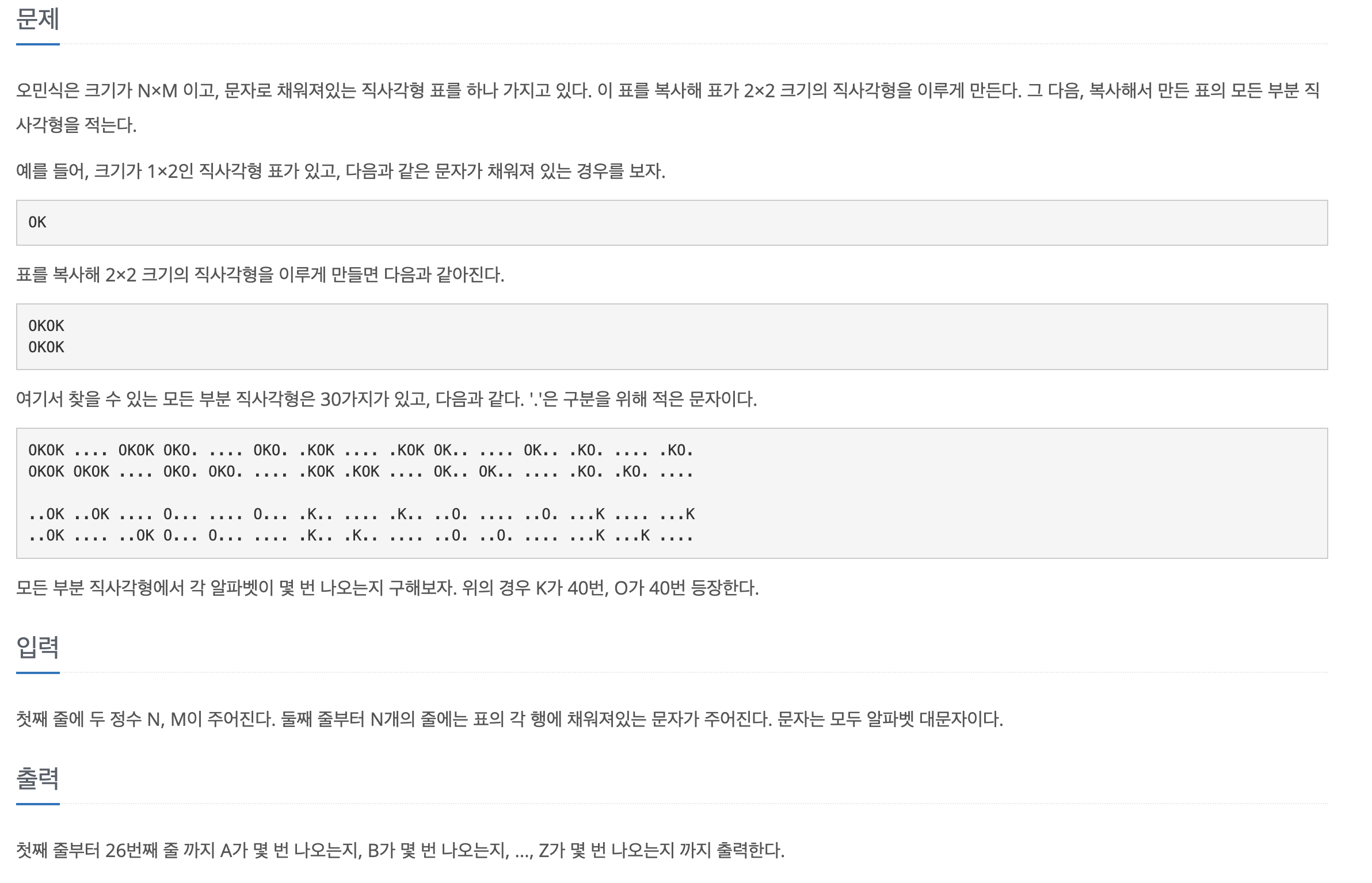 이 공식을 적용해 각 칸을 포함하는 부분 직사각형의 개수를 쉽게 구할 수 있고, 이를 통해 정답을 구해낼 수 있다.