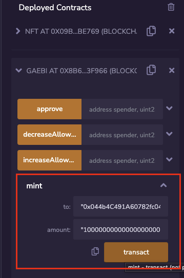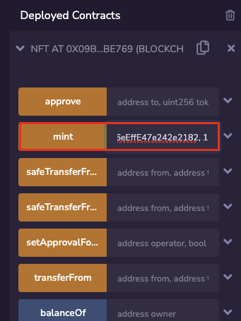 deploy 된 컨트렉트에 mint라는 버튼이있다.