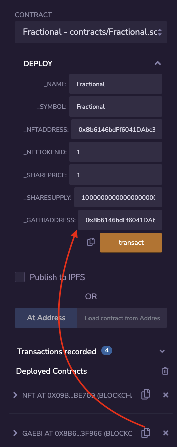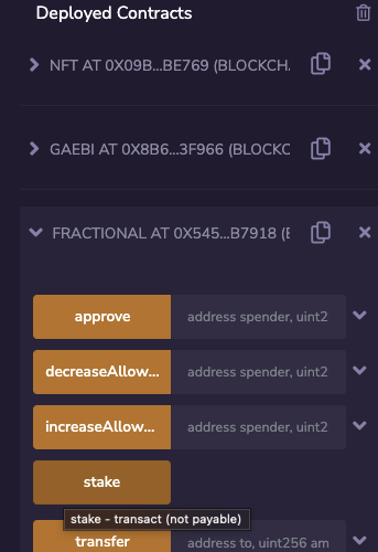 위에서 디플로이가 정상적으로 잘 되었다면 Deployed Contracts에 Fractainal 컨트렉트가 생성되었을 것이다.