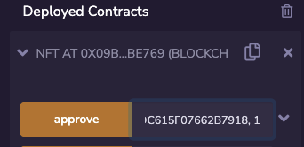 NFT 컨트렉트에서 approve에 Fractainal 컨트렉트 주소와 NFT Tokend Id 1 을 적어준다.