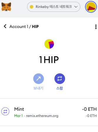 지갑에 들어가서 복사한 주소를 입력하면 다음과 같이 HIP이라는 심볼이 자동으로 나온다.