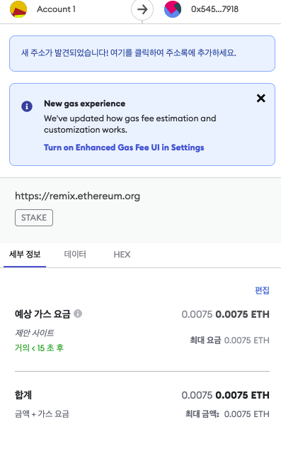 배포가 완료되면 메타마스크 창이 뜰것이다.