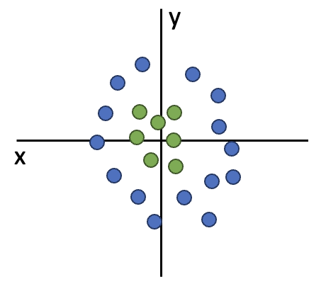 linear classifier로는 이런 형식의 데이터는 좋은 성능으로 분류할 수가 없습니다.
