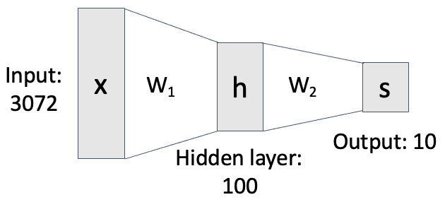 기존의 Linear function은 의 형태를 가집니다. 하지만 레이어를 한 개 더 쌓은 2-layer Neural Network은 다음과 같이 표현됩니다. (ReLU를 사용한 예시)