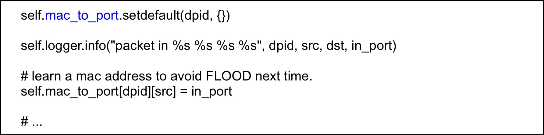 - 또한 MAC 주소 테이블에 해당하는 mac_to_port를 정의함.