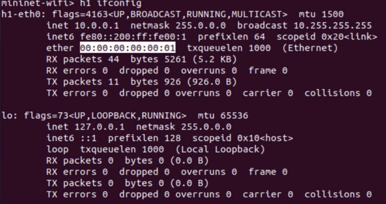 h1 ifconfig를 통해 h1의 MAC 주소 확인