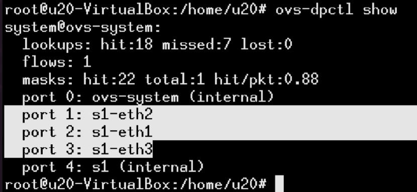 - 이 메시지는 Open Switch s1의 인터페이스 1로 들어갑니다.
