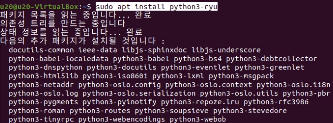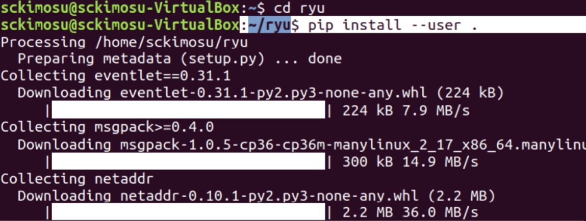 - Ryu는 OpenFlow 기반의 네트워크 제어기 소프트웨어로, OpenFlow 스위치와 통신을 하며 네트워크 트래픽을 제어하는 역할을 합니다.