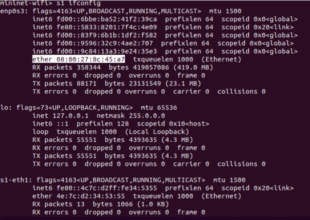 s1 ifconfig를 통해 s1의 MAC 주소 확인