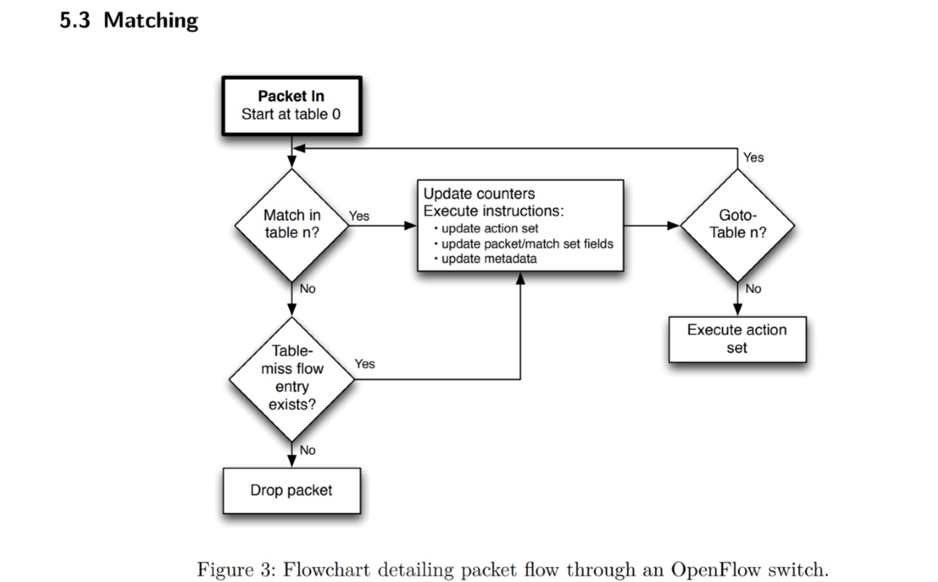 - 스위치 s1에서는 Flow T able에서 패킷이 Match 되는지 확인함