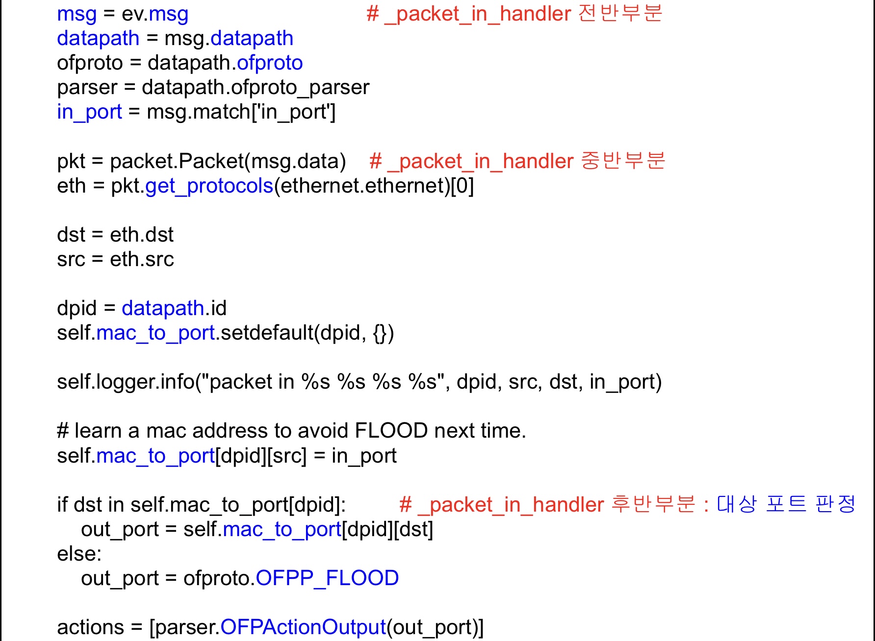 - Packet-In 처리기로 돌아가 마지막 처리 단계를 설명합니다.