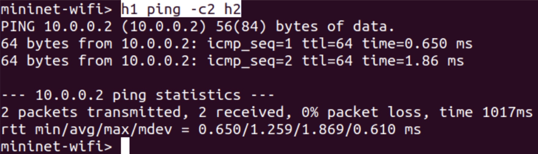 - h2는 Ping Request 메시지를 수신하고 Ping Reply 메시지를 보냅니다.
