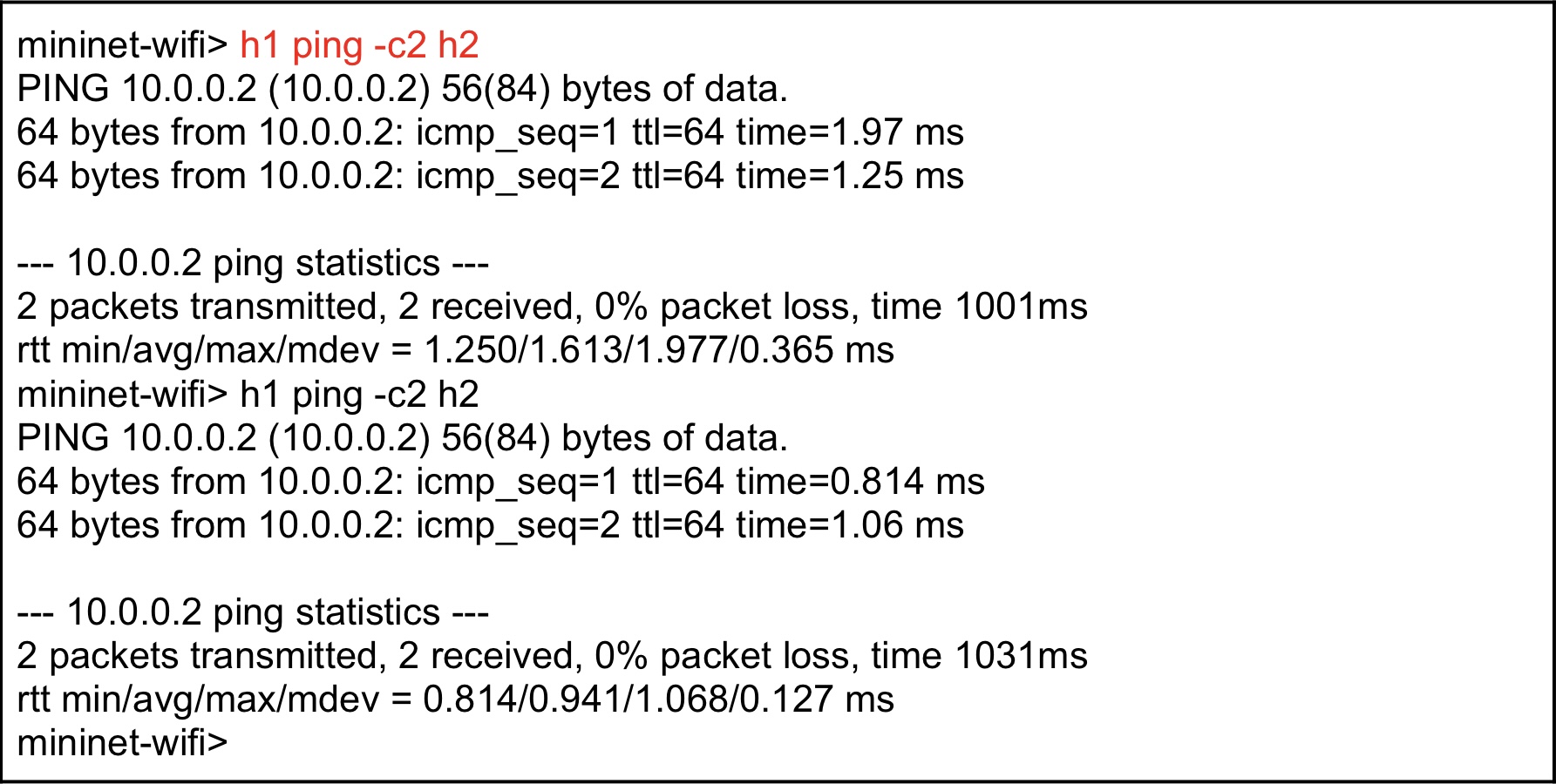 - Ping Reply 메시지는 이제 h1에게 정확히 전달됩니다.
