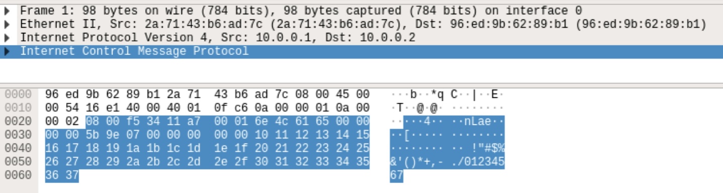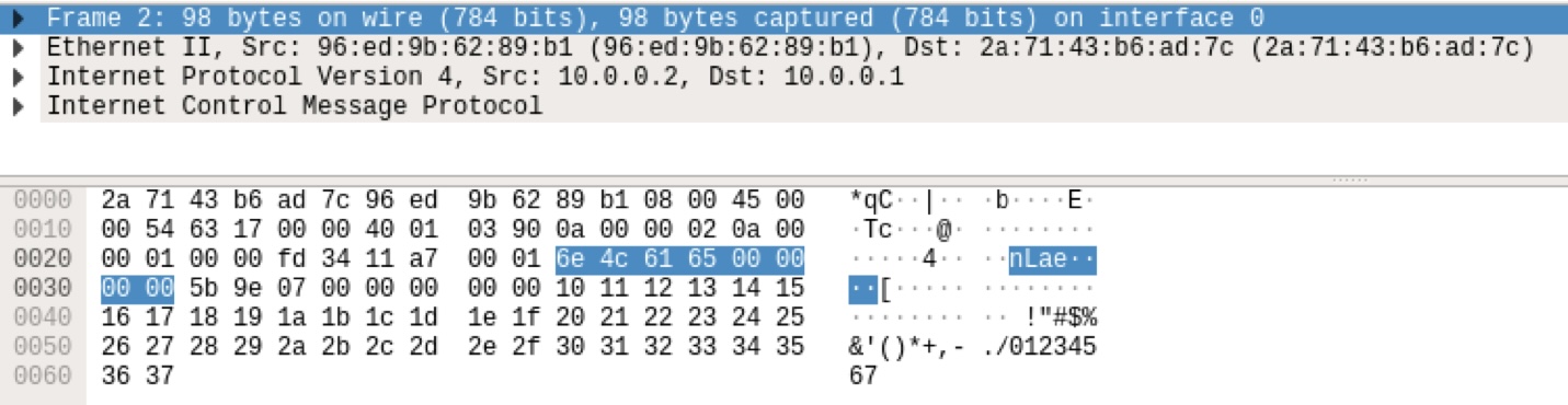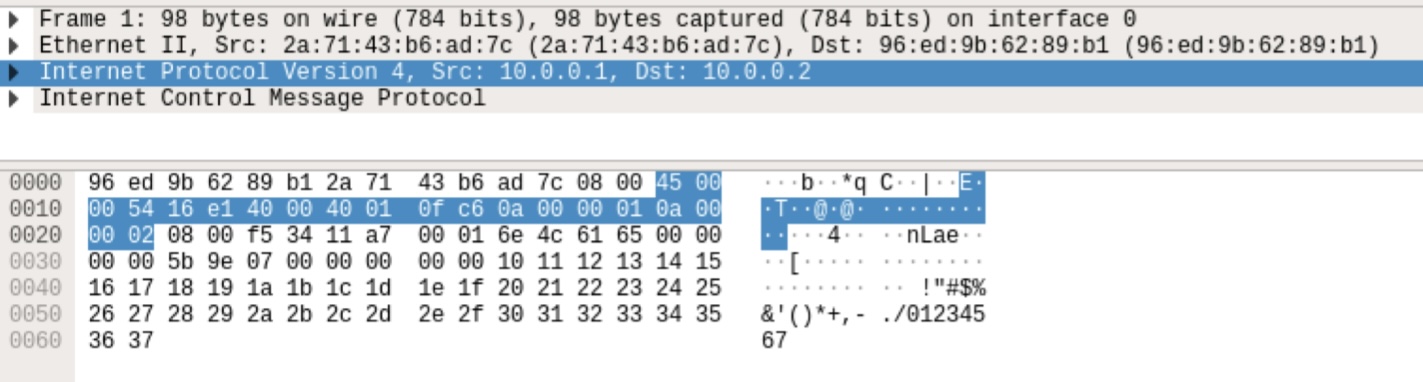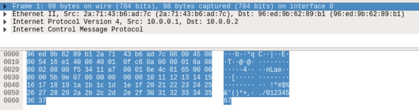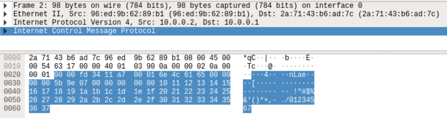 - ping reply: src address : 10.0.0.2 → dst address : 10.0.0.1