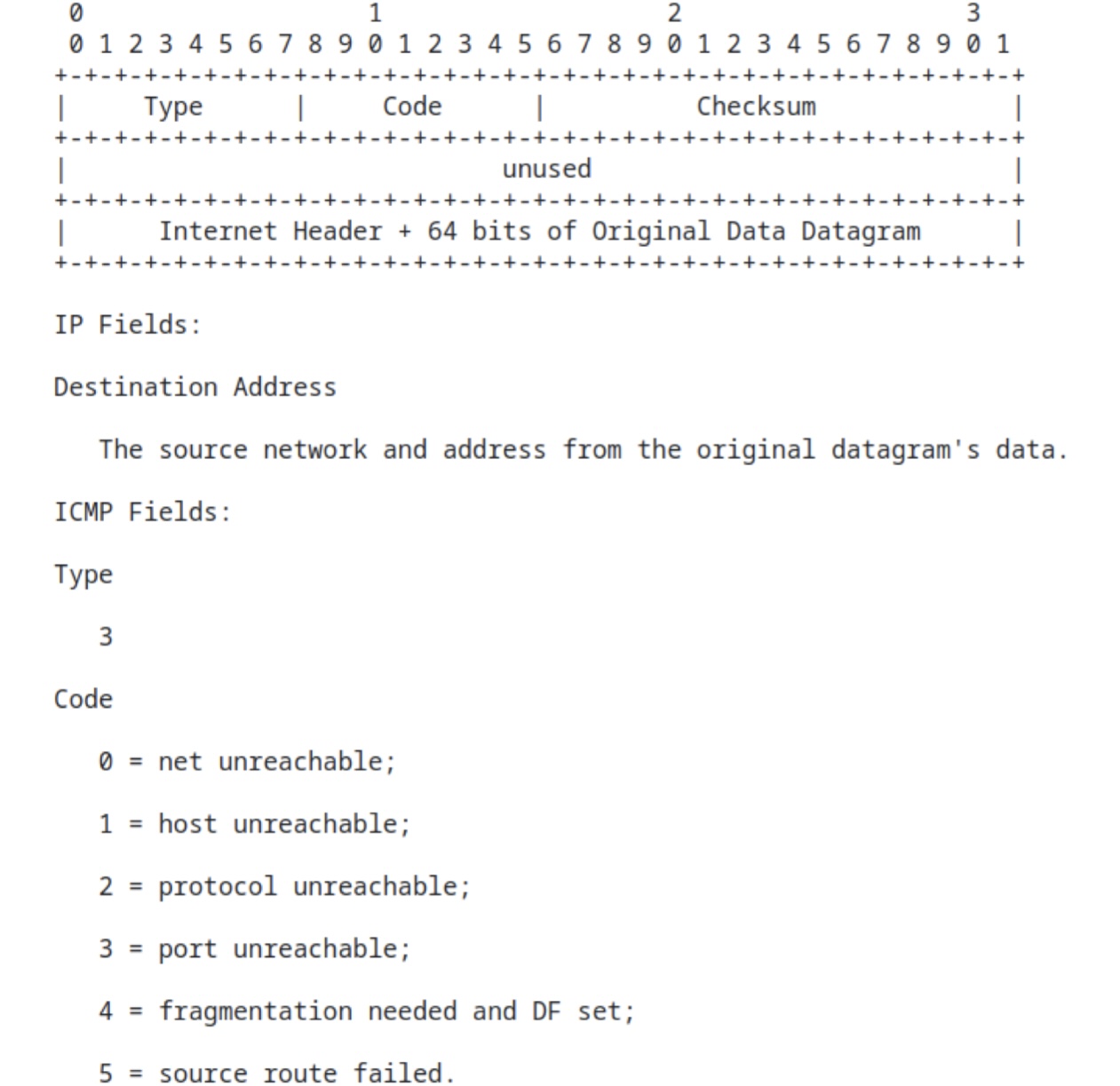 - Echo (ping) reply code = 0