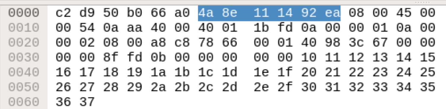 ping reply 메시지 Frame 구조.